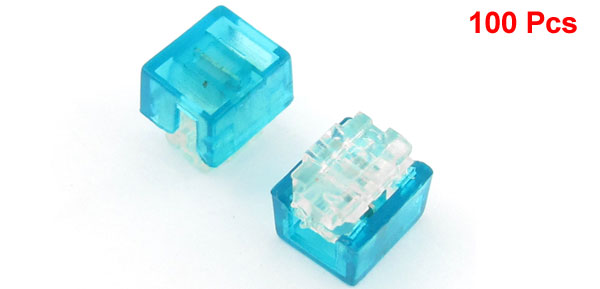 100 Pcs Two Wire Inline Joints UB Connectors Crimp Terminal Blue Clear