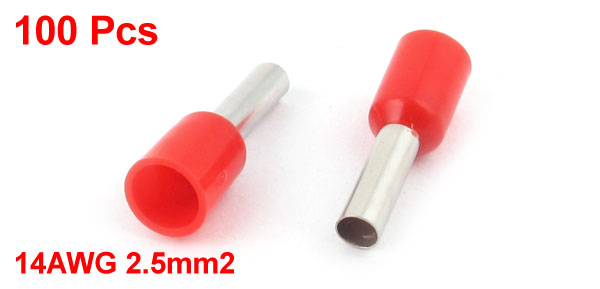 Product Name Insulated Ferrule Model E2508 Design Tube Type Material Plastic, Tin Plated Copper Color Silver Tone, Red Fit Wire Gauge 14AWG 2.5mm2 Copper Tube Size 2.3 x 2.6 x 8mm / 0.09" x 0.1" x 0.3" (Inner Dia*OD*L) Plastic Part Size 4 x 5 x 7.4mm / 0.161" x 0.2" x 0.29" (Inner Dia*OD*L) Total Length 15.4mm / 0.6" Net Weight 14g Package Content 100 Pcs (+/-2%) x Insulated Ferrules - Reviews