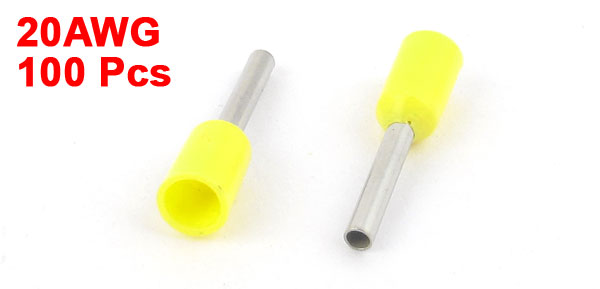 100 Pcs Wire Crimp Connector Terminal Pre Insulated Ferrule Yellow E7508 20AWG
