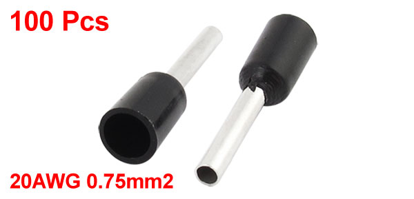 100 Pcs Wire Crimp Terminal Insulated Bootlace Ferrule Black E7508 20AWG 0.75mm2