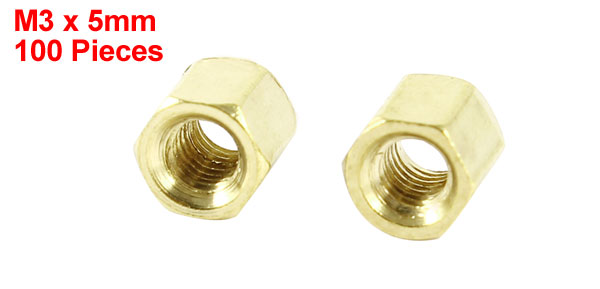 100 Pieces 3mm Female Threaded PCB Brass Standoff Spacer 5mm High Gold Tone M3x5