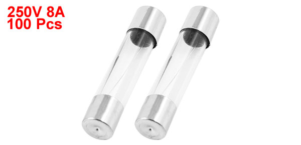 Product Name Glass Tube Fuses Rated Voltage 250V Rated Current 8A Dimension 6 x 30mm/ 0.24" x 1.18" (D*L) Material Glass Color Silver Tone, Clear Weight 120g Package 100(+/- 2%) x Glass Tube Fuses - Reviews