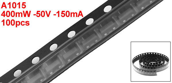 Product Name SMD Transistor Model A1015 Capsulation / Package SOT-23 Pin Number 3 Pin Collector-Emitter Voltage Vceo -50V Collector-Base Voltage Vcbo -50V Emitter-Base Voltage Vebo -5.0V Collector Current -Continuous Ic -150mA Collector Power Dissipation Pc 0.4W Color Black Weight 5g Package Content 200 in 1 x SMD Transistor - Reviews