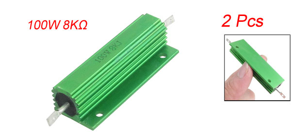 100 Watt 8K Ohm Screw Tap Mounted Aluminum Housed Wirewound Resistors 2 Pcs