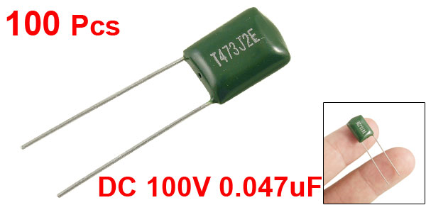 Product Name Polyester Film Capacitors Quantity 100 pieces (±2% ) Model 2A473J Withstand Voltage DC 100V Capacitance 0.047uF Capacitance Tolerance ±5% Body Size 13 x 9 x 6mm/ 0.51" x 0.35" x 0.24" (L*W*T) Lead Spacing 5mm / 0.2" Lead Diameter 0.4mm / 0.016" Weight 72g Main Color Green Package Content 100 x Polyester Film Capacitors - Reviews