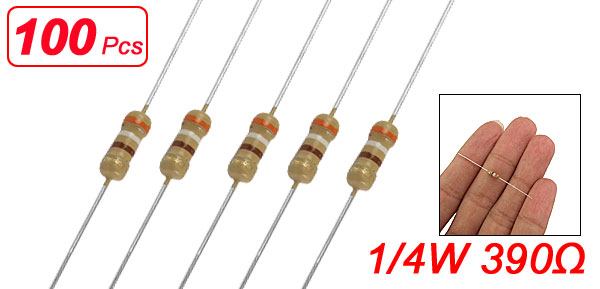 100 x 1/4W 250V 390 Ohm Axial Carbon Film Resistors