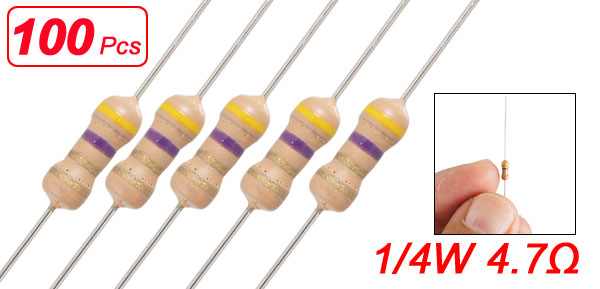 100 x 1/4W 250V 4.7 ohm 4R7 Through Hole Carbon Film Resistor