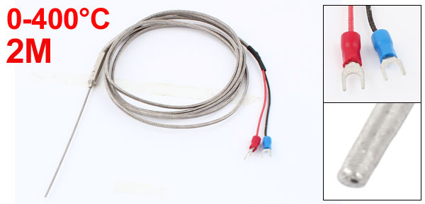 Main Color Silver Tone Brand DMiotech Net Weight 37g Total Length 2M/ 6.6Ft Country of Manufacture CHINA Package Content 1 x Thermocouple Type K Type Fork Terminal Spacing 4.2mm/ 0.17" Material Metal Probe Size 100 x 1.5mm/ / 4" x 0.06"(L*D) Temperature Range 0-400C - Reviews