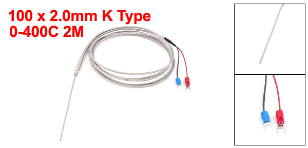 100 x 2.0mm Probe K Type Temperature Thermocouple Sensor 0-400C 2M