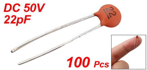 Product Name Ceramic Disc Capacitor Features Low Voltage Withstand Voltage DC 50V Capacitance 22pF Capacitance Tolerance ± 10% Lead Pitch Spacing 2mm/0.08'' Body Dimension(Each) 3 x 1.5mm / 0.1" x 0.05"(D*T) Weight 6g Color Brick Red Package Content 100 (± 2%) x Ceramic Disc Capacitors - Reviews