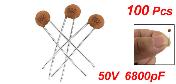 Product Name Ceramic Disc Capacitor Features Low Voltage Withstand Voltage DC 50V Capacitance 6800pF Capacitance Tolerance +80%-20% Lead Pitch Spacing 2.5mm / 0.1'' Body Dimension(Each) 3 x 1.5mm / 0.1" x 0.05"(D*T) Weight 6g Color As Picture Show Package Content 100 (± 2%) x Ceramic Disc Capacitors - Reviews