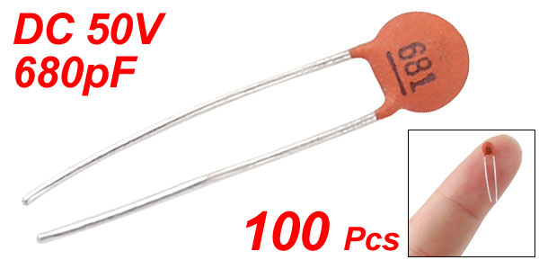 Product Name Ceramic Disc Capacitor Features Low Voltage Withstand Voltage DC 50V Capacitance 680pF Capacitance Tolerance ± 10% Lead Pitch Spacing 2.5mm/0.1'' Body Dimension(Each) 3 x 1.5mm / 0.1" x 0.05"(D*T) Weight 6g Color As Picture Show Package Content 100 (± 2%) x Ceramic Disc Capacitors - Reviews