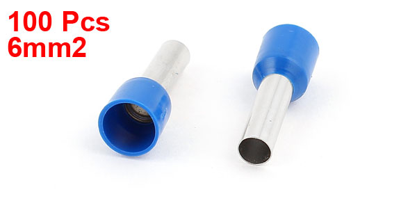 100 x 6mm2 Crimp Cord End Terminal Insulated Bootlace Ferrule Connector Blue