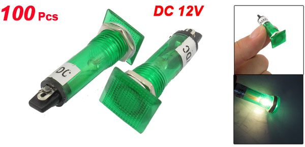 100 x DC 12V 10mm Holing Recessed Mount Green Signal Indicator Pilot Light Lamp