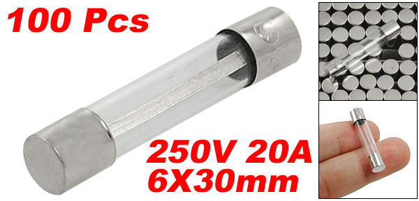 Product Name Glass Tube Fuses Features Fast Blow(F) Low Breaking Capacity(L) Rated Voltage 250V Rated Current 20A Specification 6 x 30mm Diameter 6mm / 0.236" Length 30mm / 1.181" Quantity 100(±2%) Material Glass Color As Picture Show Weight 111g Package 100 x Glass Tube Fuses - Reviews