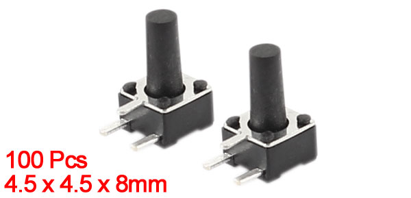100 x Momentary Action 3 Pin Terminals Tactile Switch 4.5mmx4.5mmx8mm Black