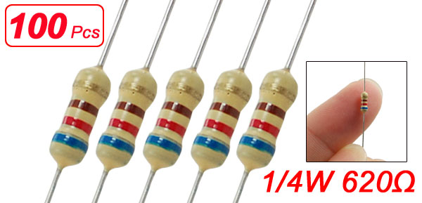 100 x Resistors 620 ohm 1/4W 250V 5% Carbon Film