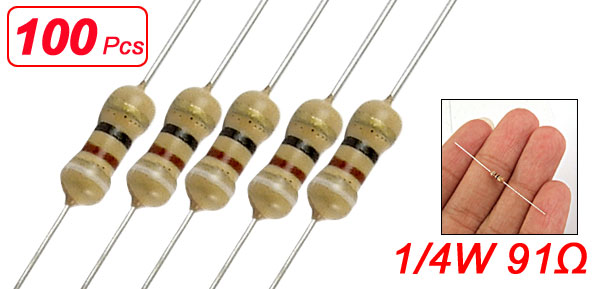 Product Name Resistor Resistor Type Carbon Film Rated Power 1/4 W Resistance Value 91Ω Tolerance ± 5% Withstang Voltage 250V Body Size (Approx.) 5 x 2mm/0.2'' x 0.08'' (L*D) Lead Diameter 0.3mm /0.01 Total Length 45mm /1.8'' Color As Picture Shown Weight 10g Package Content 100(±2%) x Carbon Film Resistors - Reviews