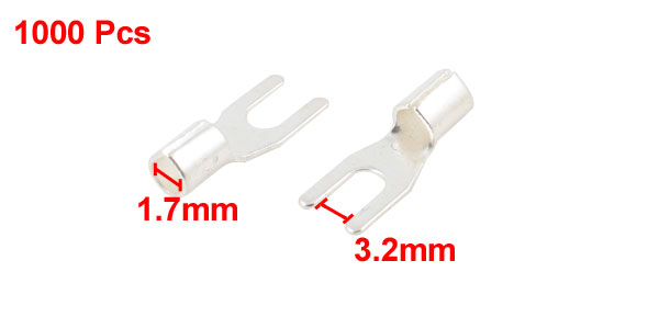 1000 Pcs 1.7mm Wire Cable Connector Copper Lug Non-insulated Fork Terminal