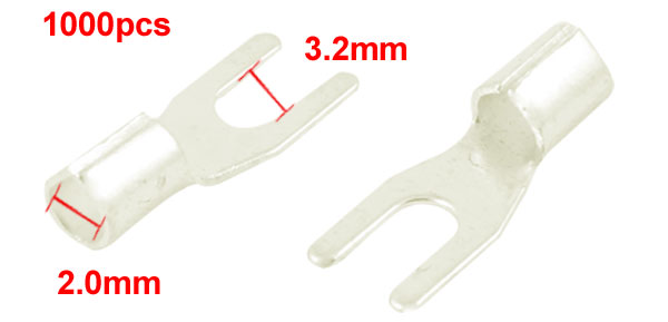 1000 Pcs 3.2mm Wire Cable Connector Copper Lug Non-insulated Fork Terminal