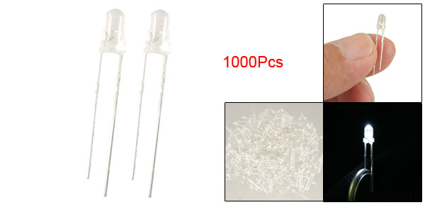 1000 Pcs 3mm Dia. White Light LED Lamp Emitting Diode