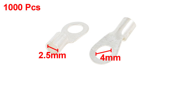 1000 Pcs 4mm Stud Copper Lug Cable Connector Non-insulated Ring Terminal
