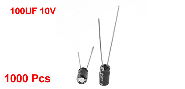 Product Name Electrolytic Capacitor Type Radial Lead Maximum Temperature 105°C Withstand Voltage 10V Capacitance 100UF Body Size 7x 4mm / 0.28'' x 0.16'' (L*D) Lead Length 20mm/ 0.8'' 25mm/ 1'' Total Length 33mm/ 1.2" Dielectric Material Aluminum Weight 215g Color Black, Gray Package Content 1000Pcs(± 2%) x Electrolytic Capacitors - Reviews