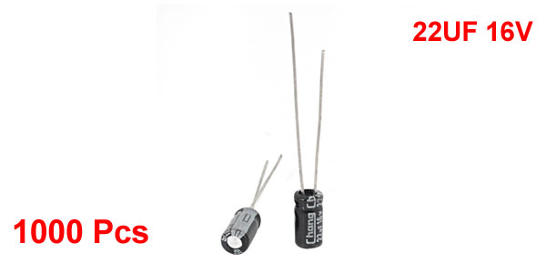 Details1000 Pcs 4mm x 7mm 22UF 16V Polarized Radial Electrolytic Capacitor  Product Name Electrolytic Capacitor Type Radial Lead Maximum Temperature 105°C Withstand Voltage 16V Capacitance 22UF Body Size 7x 4mm / 0.3'' x 0.2'' (L*D) Lead Length 20mm/ 0.8'' 25mm/ 1'' Total Length 33mm/ 1.3" Dielectric Material Aluminum Weight 216g Color Black, Gray Package Content 1000Pcs(± 2%) x Electrolytic Capacitors