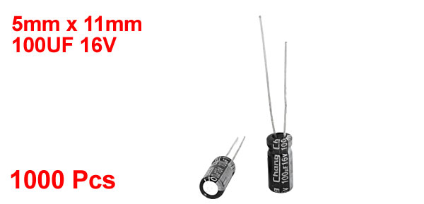 1000 Pcs 5mm x 11mm 100UF 16V Polarized Radial Electrolytic Capacitor
