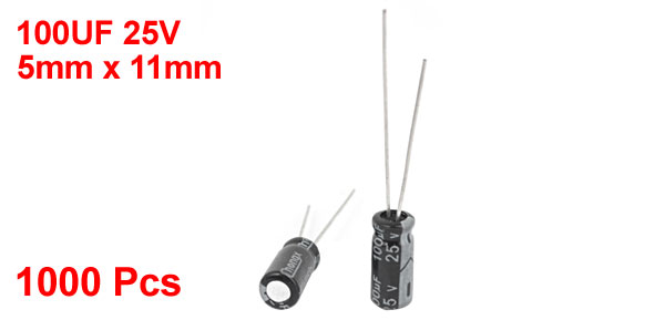 1000 Pcs 5mm x 11mm 100UF 25V Polarized Radial Electrolytic Capacitor