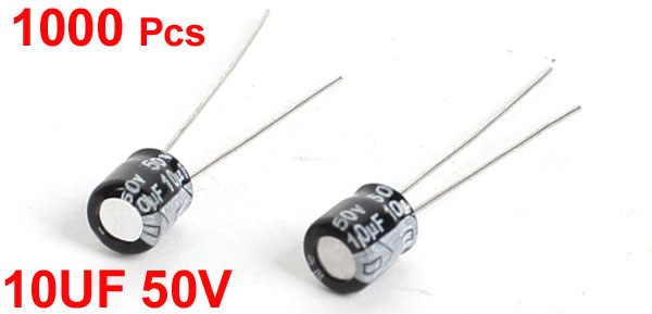 Product Name Electrolytic Capacitor Type Radial Lead Maximum Temperature 105°C Withstand Voltage 50V Capacitance 10UF Body Size 5x 5mm / 0.2'' x 0.2'' (L*D) Lead Length 20mm/ 0.8'' 25mm/ 1" Total Length 30mm/ 1.2" Dielectric Material Aluminum Weight 233g Color Black, Gray Package Content 1000Pcs(± 2%) x Electrolytic Capacitors - Reviews