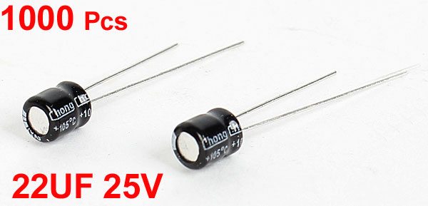 Product Name Electrolytic Capacitor Type Radial Lead Maximum Temperature 105°C Withstand Voltage 25V Capacitance 22UF Body Size 5 x 5mm / 0.2'' x 0.2'' (L*D) Lead Length 19mm/ 0.7'' 25mm/ 1'' Total Length 30mm/ 1.2" Dielectric Material Aluminum Weight 220g Color Black, Gray Package Content 1000Pcs(± 2%) x Electrolytic Capacitors - Reviews