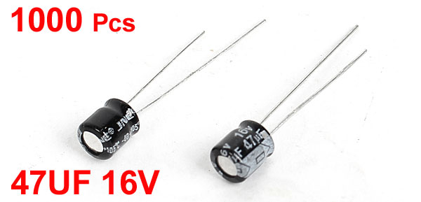 1000 Pcs 5mm x 5mm 47UF 16V Polarized Radial Electrolytic Capacitor