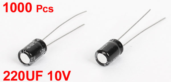 Product Name Electrolytic Capacitor Type Radial Lead Maximum Temperature 105°C Withstand Voltage 10V Capacitance 220UF Body Size 7 x 5mm / 0.3'' x 0.2'' (L*D) Lead Length 20mm/ 0.8'' 25mm/ 1'' Total Length 33mm/ 1.3" Dielectric Material Aluminum Weight 295g Color Black, Gray Package Content 1000Pcs(± 2%) x Electrolytic Capacitors - Reviews