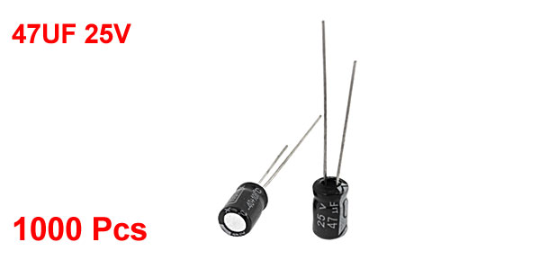 1000 Pcs 5mm x 7mm 47UF 25V Polarized Radial Electrolytic Capacitor