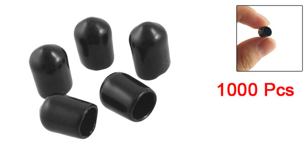 1000 Pcs 6mm Inner Dia Round Tip Black PVC Insulated End Caps
