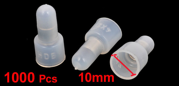 Product Name Closed End Wire Connector Tin-plated Tube Inner Dia 6mm/ 0.24" Tin-plated Tube Length 14mm/ 0.55" Inner Dia 10mm/ 0.39" Total Size (Each) 12 x 24mm/ 0.47" x 0.94" (Max.Dia.*L) Color Gray Material Plastic, Metal Weight 913g Package 1000(± 2%) x Closed End Wire Connector - Reviews