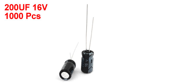 Product Name Electrolytic Capacitor Type Radial Lead Maximum Temperature 105°C Withstand Voltage 16V Capacitance 220UF Body Size 11x 6mm / 0.4'' x 0.2'' (L*D) Lead Length 20mm/ 0.8'' 25mm/ 1'' Total Length 36mm/ 1.4" Dielectric Material Aluminum Weight 549g Color Black, Gray Package Content 1000Pcs(± 2%) x Electrolytic Capacitors - Reviews