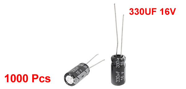 Product Name Electrolytic Capacitor Type Radial Lead Maximum Temperature 105°C Withstand Voltage 16V Capacitance 330UF Body Size 11x 6mm / 0.4'' x 0.2'' (L*D) Lead Length 20mm/ 0.8'' 25mm/ 1'' Total Length 36mm/ 1.4" Dielectric Material Aluminum Weight 658g Color Black, Gray Package Content 1000Pcs(± 2%) x Electrolytic Capacitors - Reviews