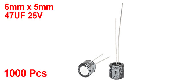 1000 Pcs 6mm x 5mm 47UF 25V Polarized Radial Electrolytic Capacitor