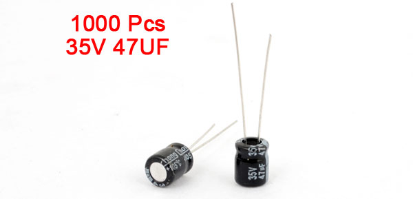Product Name Electrolytic Capacitor Type Radial Lead Maximum Temperature 105°C Withstand Voltage 35V Capacitance 47UF Body Size 7x 6mm / 0.3'' x 0.2'' (L*D) Lead Length 20mm/ 0.8'' 25mm/ 1'' Total Length 33mm/ 1.3" Dielectric Material Aluminum Weight 392g Color Black, Gray Package Content 1000Pcs(± 2%) x Electrolytic Capacitors - Reviews