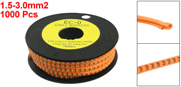 1000 Pcs EC-0 Arabic Numeral 3 Pattern Cable Marker Orange for 1.5-3mm2 Tube