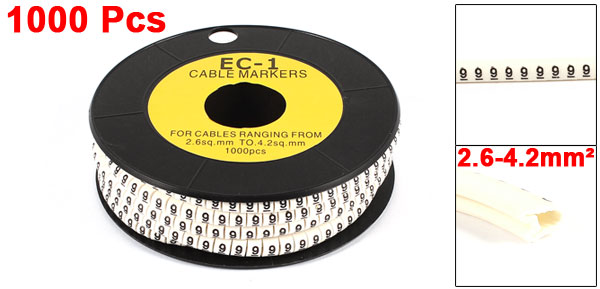 Product Name Cable Markers Model EC-1 Material Soft PVC, Plastic Marker Number 9 Fit Cable 2.6-4.2mm² Inner Diameter(Approx.) 3.6mm/0.14"(Max.) Each Marker Size(Approx.) 5 x 5 x 7mm/ 0.2" x 0.2" x 0.28"(L*W*H) Color White Net Weignt 123g Package Content 1000(±2%) x Cable Markers - Reviews