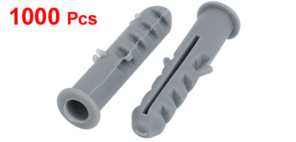 1000 Pcs Plastic Anti-rotation Wall Mounted Expansion Nail Plug Gray 6mm x 30mm