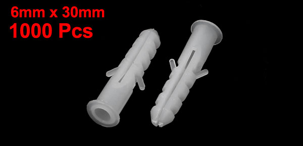 1000 Pcs Plastic Anti-rotation Wall Mounted Expansion Nail Plug White 6mm x 30mm