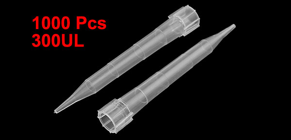 Details1000 Pcs Plastic Universal Pipette Pipettor Micropipette Tips 300UL  Product Name Pipette Tips Quantity 1000 (±2%) Pcs Capacity 300ul Material Plastic Color Clear White Top Inner Dia 5mm/0.2" Size 7.4 x 50cm/ 0.29" x 2" (Max.D*L) Net Weight 340g Package Content 1000 (±2%) x Pipette Tips