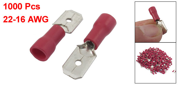 1000 Pcs Red PVC Sleeve Insulating Crimp Terminals for 22-16 AWG