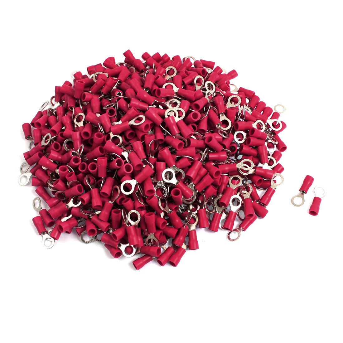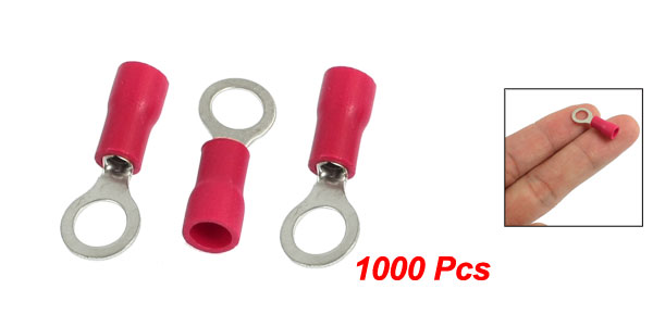 1000 Pcs RV1.25-5S AWG 22-16 Red Sleeve Pre Insulated Ring Terminals Connector