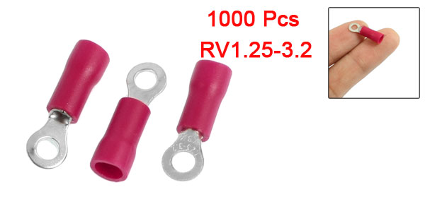 1000 Pcs RV1.25-3.2 AWG 22-16 Red Sleeve Pre Insulated Ring Terminals Connector