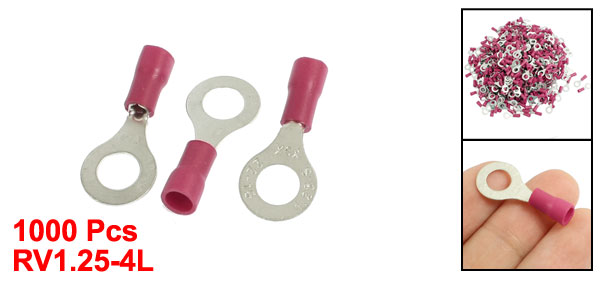 1000 Pcs RV1.25-4L Red PVC Sleeve Pre Insulated Ring Terminals Connector